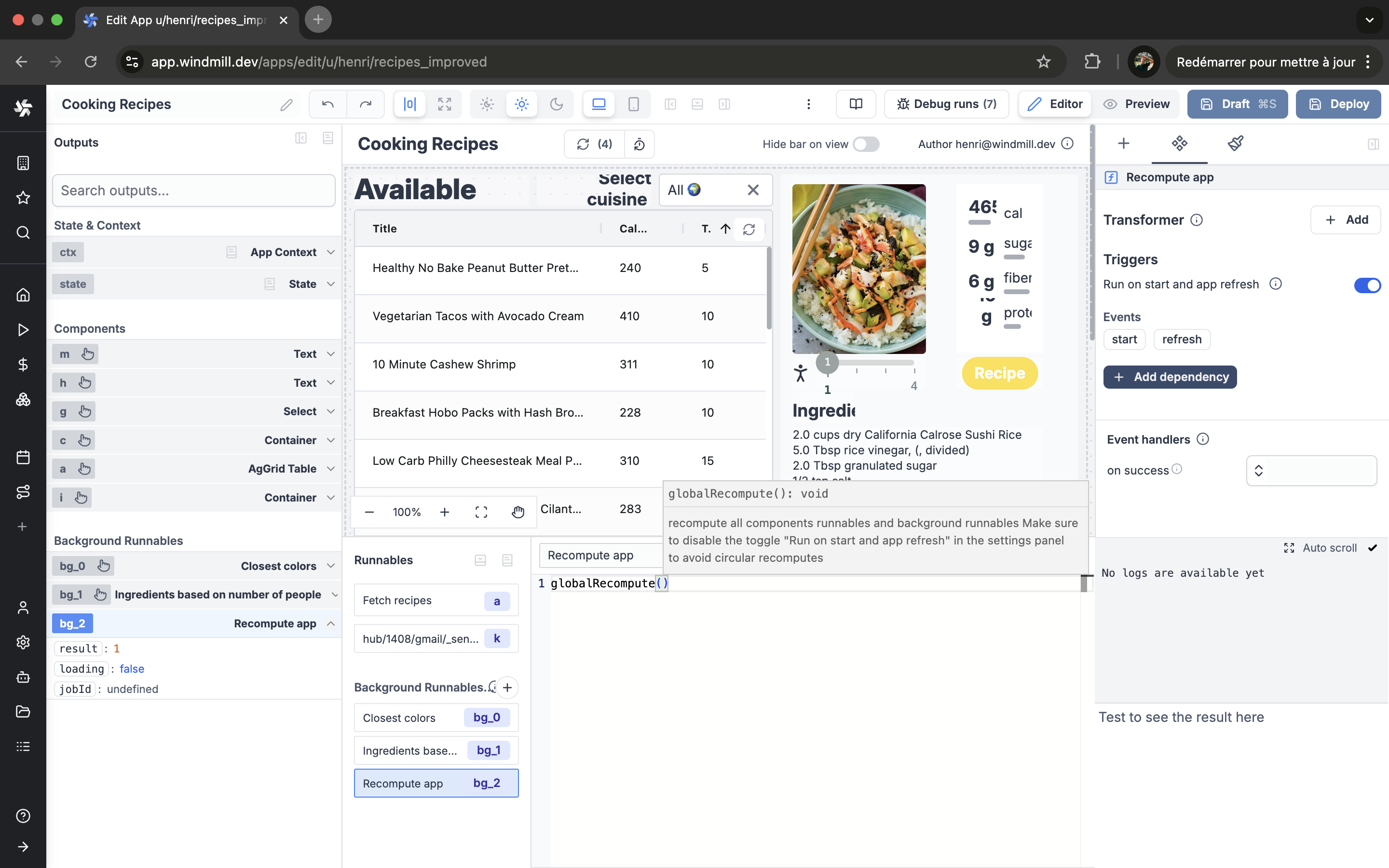 - Integrated with Windmill backend flow/script capabilities
